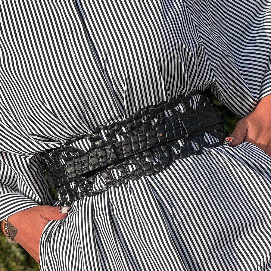 Δερμάτινη ζώνη μπάσκα 10 εκ. με σχέδιο Cutout