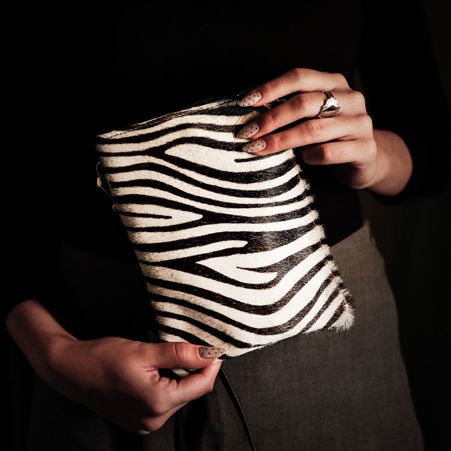 Δερμάτινο κρεμαστό τσαντάκι από Pony skin εμπρός και καστόρι πίσω,