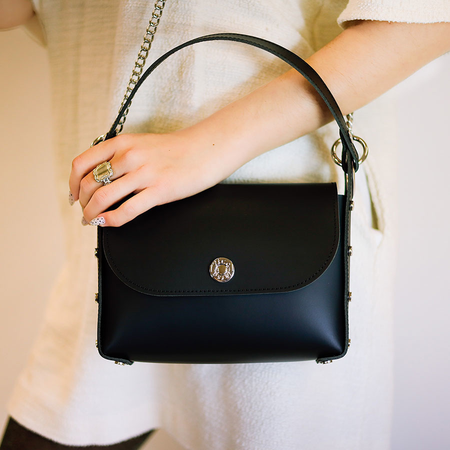 Δερμάτινη παραλληλόγραμμη τσάντα με πλαϊνά μπουντούζια,